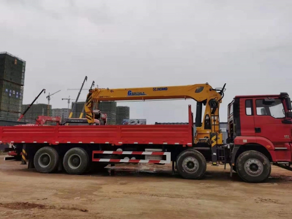 圖片中上裝的是徐工14噸五節G系列雙聯泵吊機,舉升高度是20.8米,工作半徑18.8米,